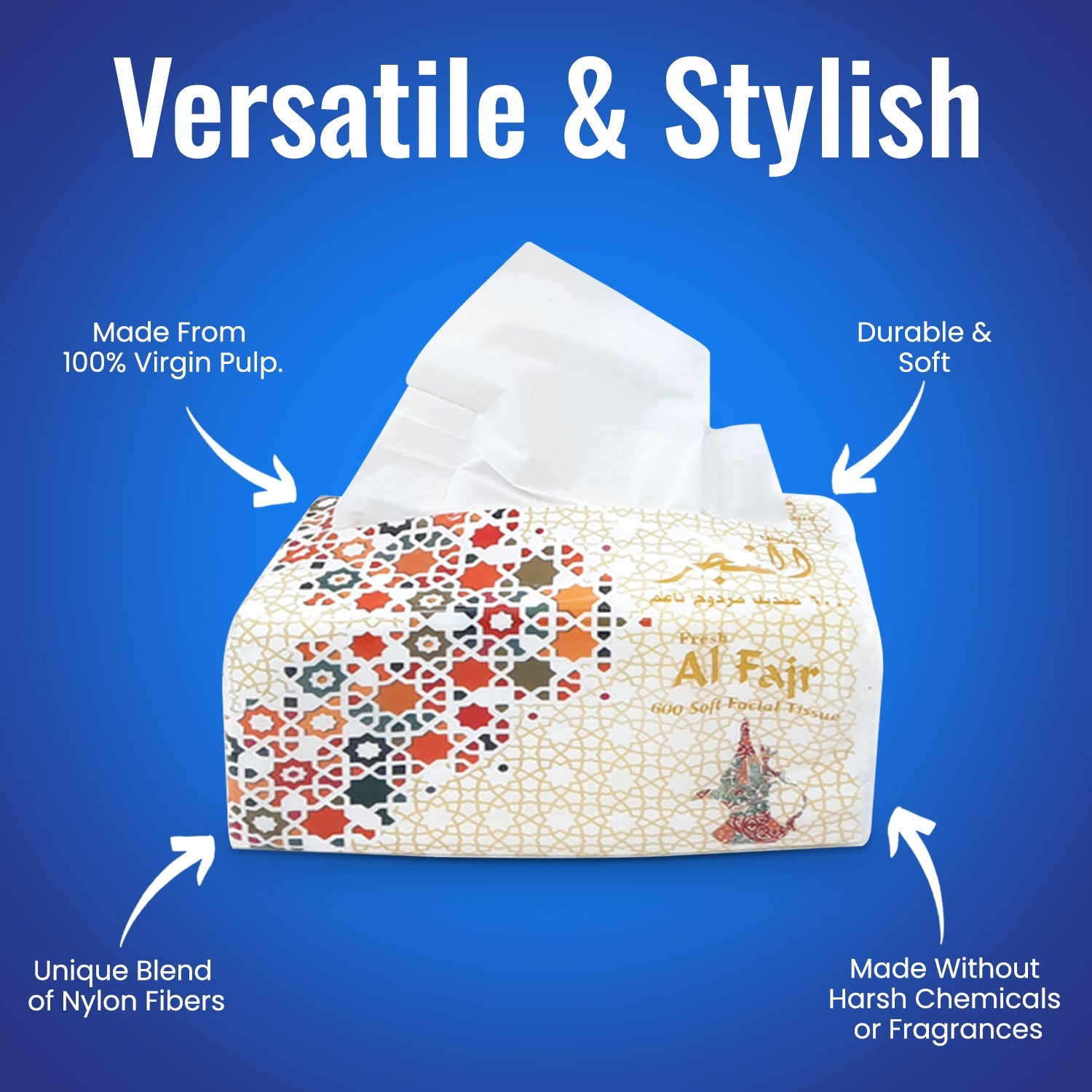 تم تصميم مناديل الوجه المصنوعة من النايلون من الفجر 600 ورقة ثنائية الطبقات لتوفير نعومة فائقة وقوة لاحتياجات النظافة اليومية الخاصة بك. مع 600 ورقة في العبوة، توفر هذه المناديل عالية الجودة راحة وموثوقية تدوم طويلاً. يضمن التصميم المكون من طبقتين متانة وامتصاصًا استثنائيين، مما يجعلها مثالية للاستخدامات المختلفة، سواء في المنزل أو في المكتب أو أثناء التنقل. تضيف عبوتها الملفوفة بالنايلون لمسة من الأناقة مع ضمان بقاء المناديل مخزنة بشكل صحي.