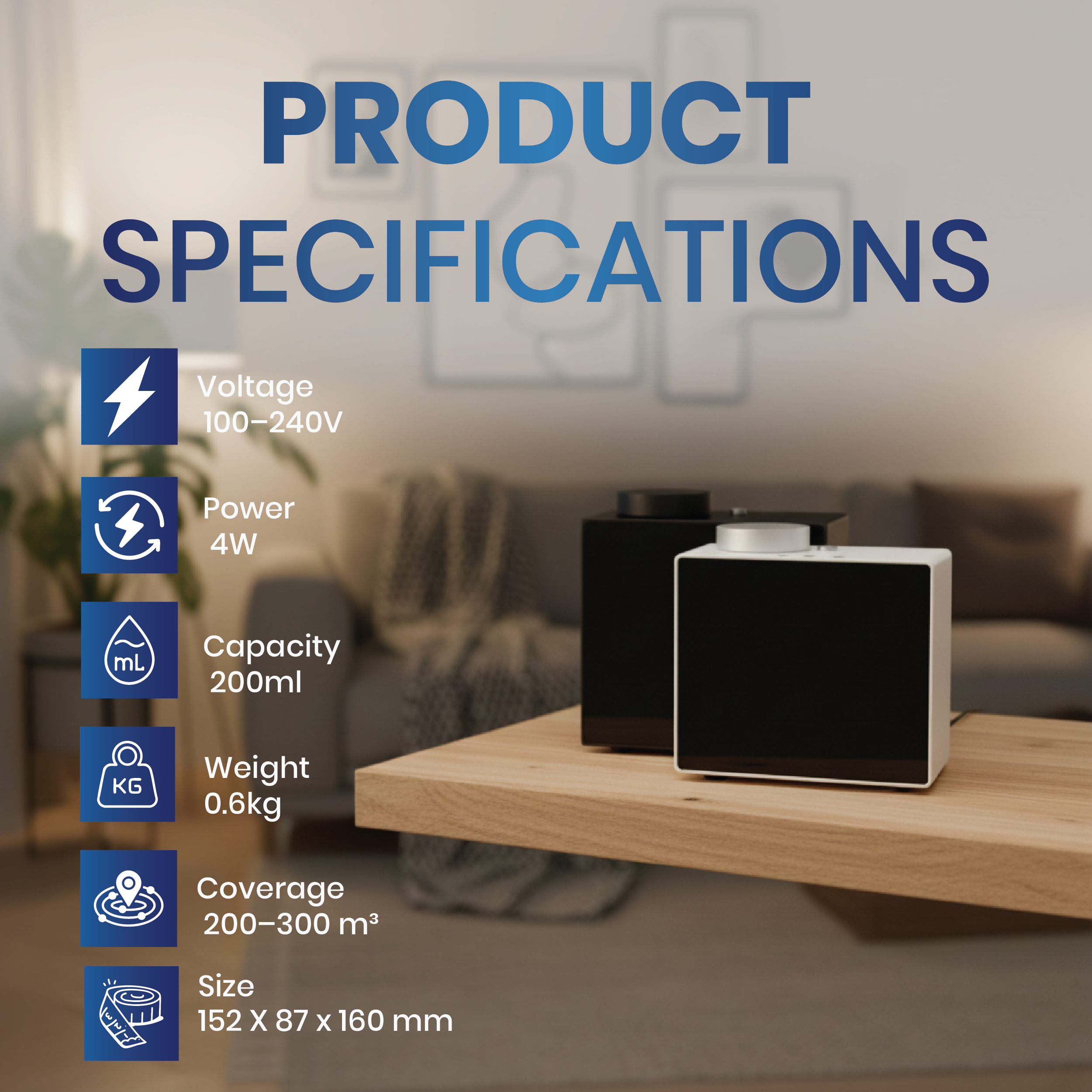 Coverage Area: Suitable for medium-sized spaces