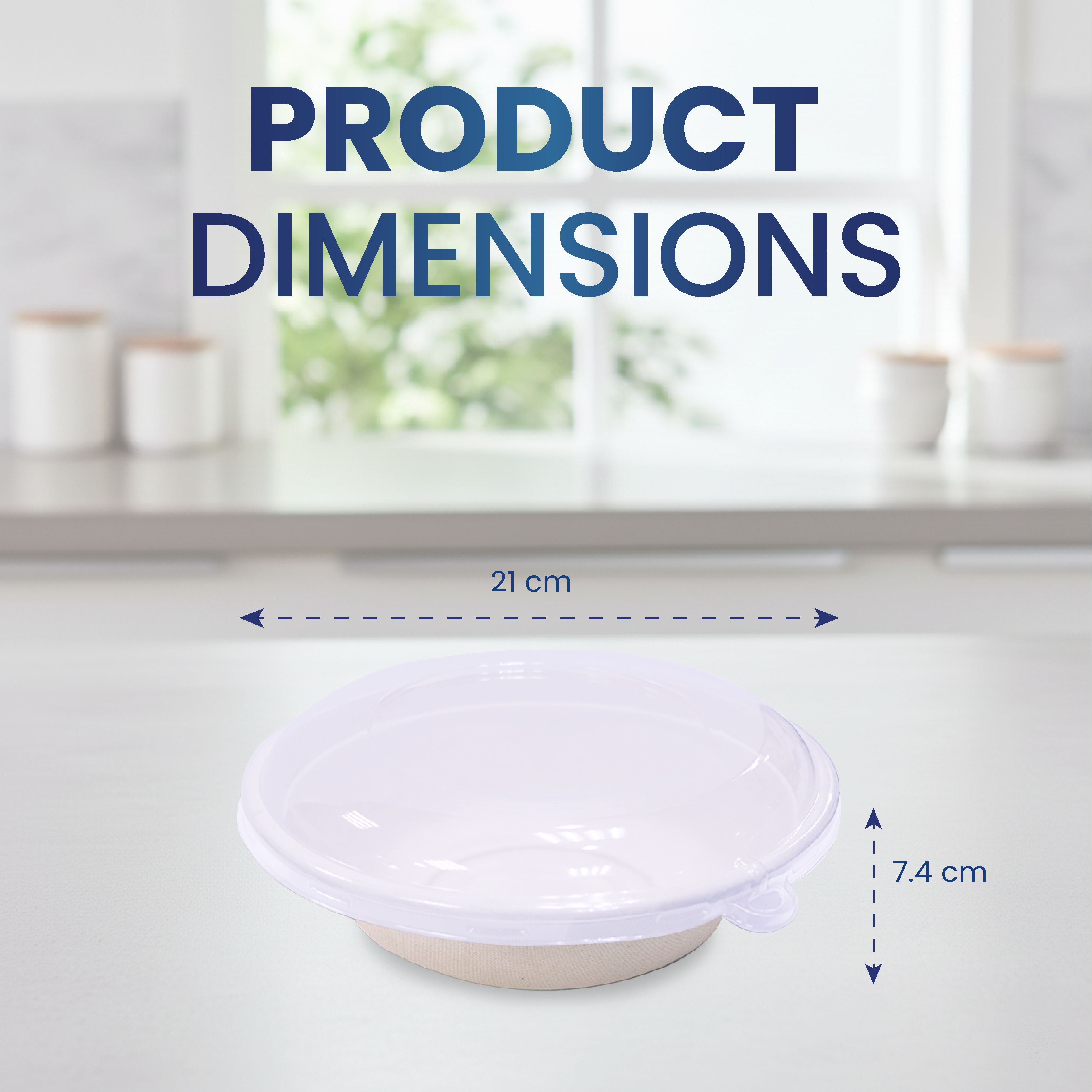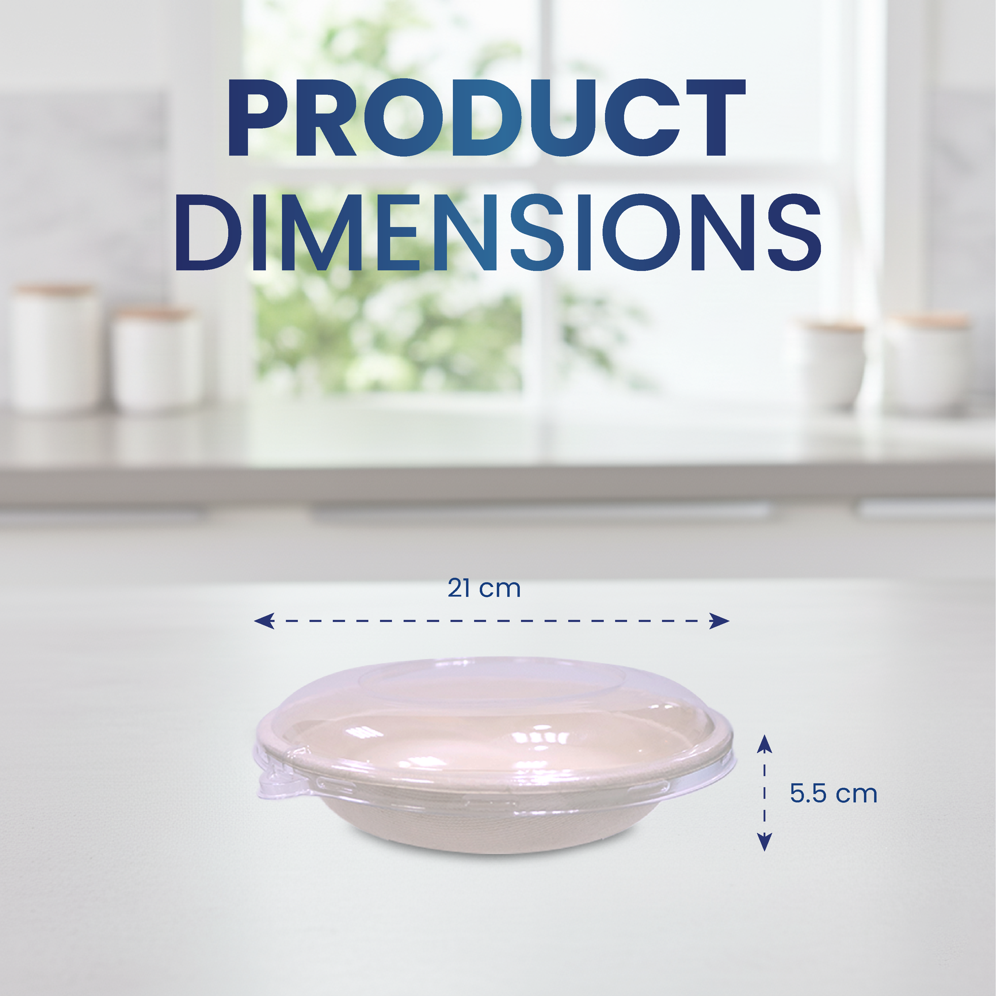 Serve and store food sustainably with our Bagasse Round Containers, available in 12oz to 40oz sizes. Each container comes complete with a Bagasse, PET, or PP lid (included — not sold separately), ensuring a secure and leak-resistant fit. Ideal for takeaway, catering, restaurants, and meal prep, these biodegradable containers are microwave-safe, sturdy, and eco-conscious, helping your business go green while maintaining quality presentation.