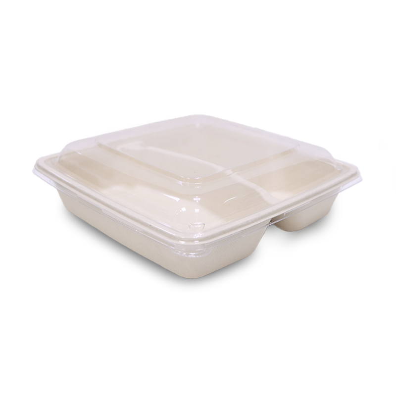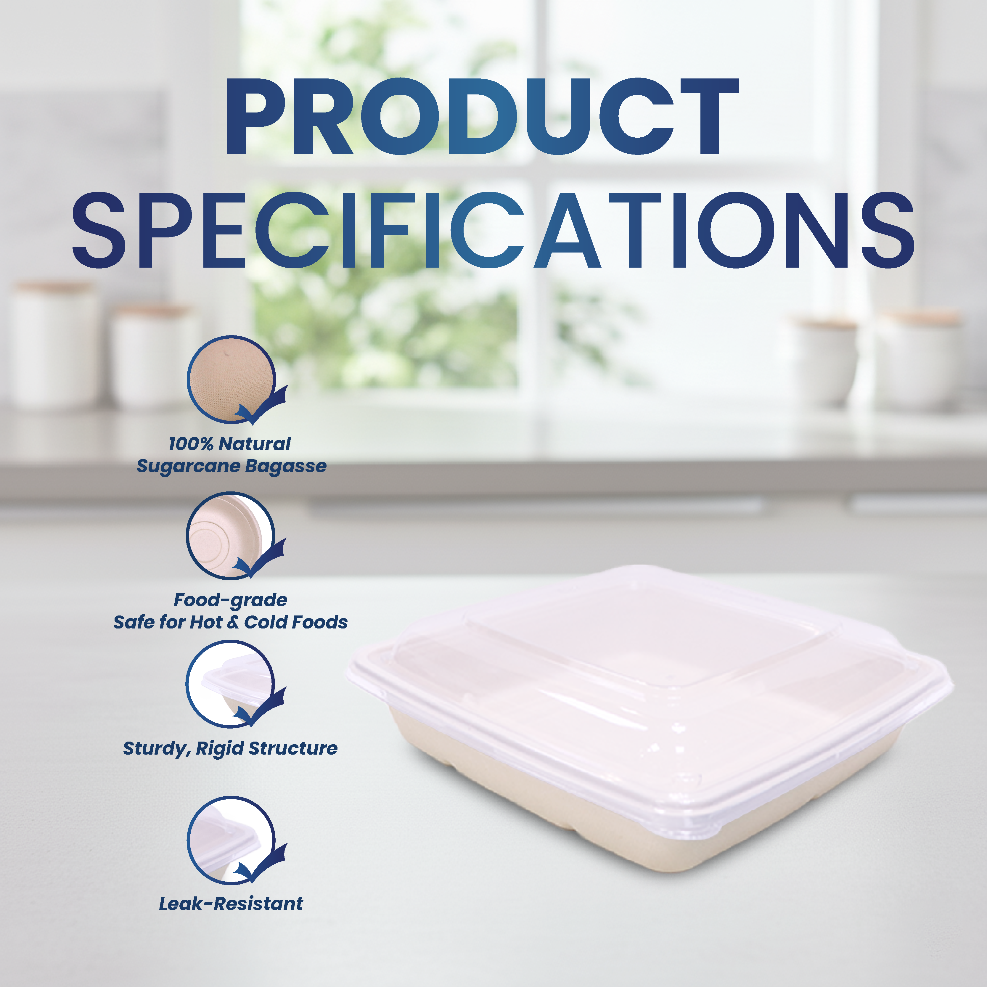 Versatile Square Bagasse Containers with PET, PP & Bagasse Lids