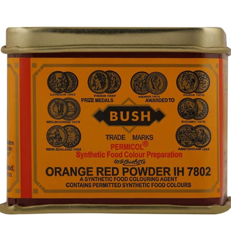 BUSH Orange Red Powder is a high-quality, food-grade colorant crafted to add vivid and appealing hues to your culinary creations. Ideal for use in baked goods, confections, desserts, and beverages, this 100g pack offers excellent solubility and consistent coloring. Whether you're decorating cakes or enhancing sweets, BUSh Orange Red Powder delivers professional-grade results for both commercial kitchens and home bakers.