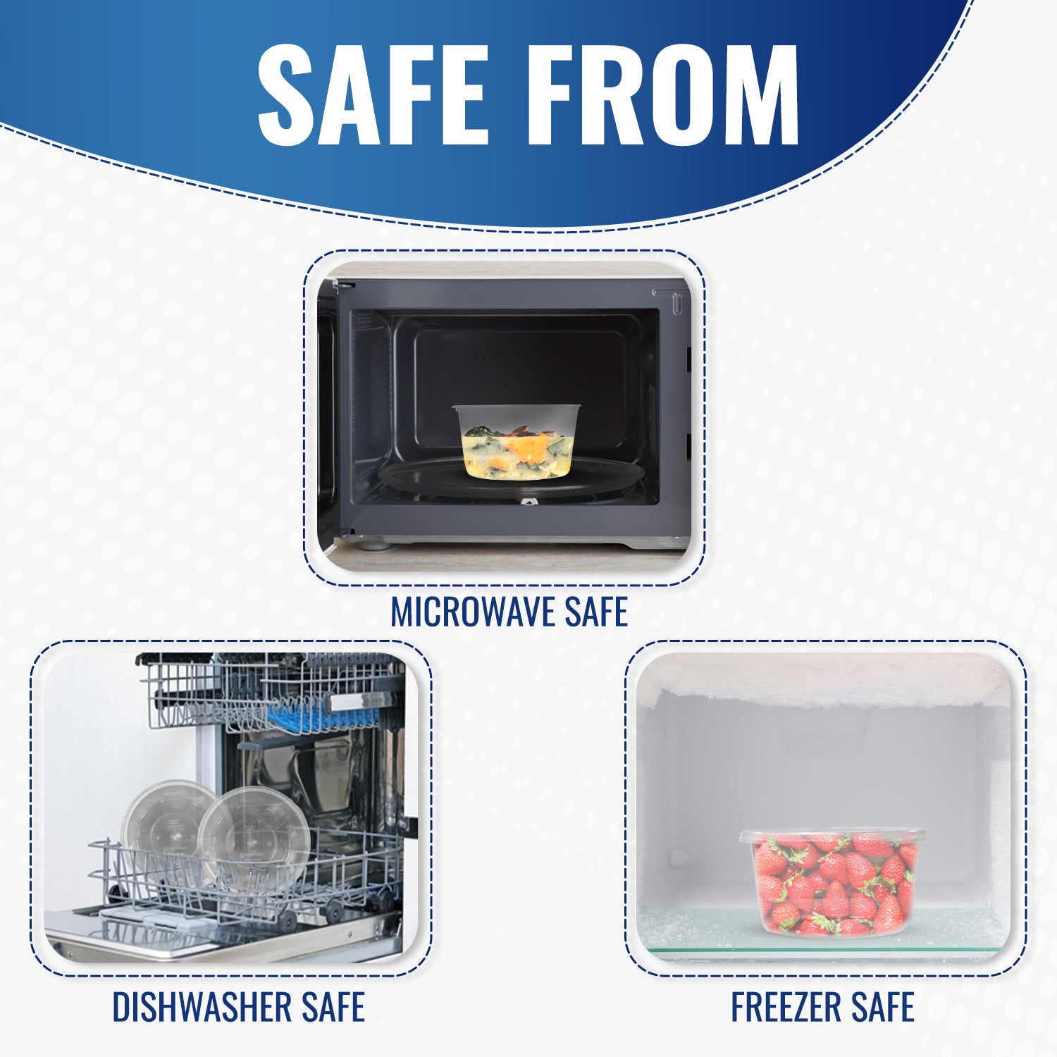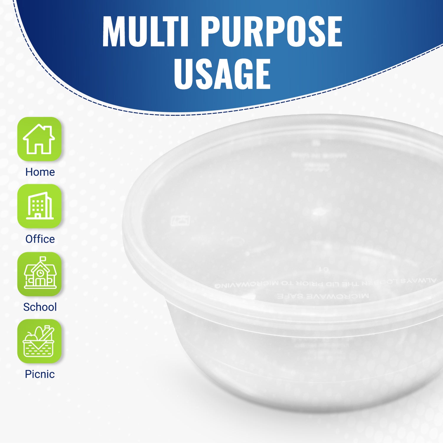 Clear Round Microwave Container is perfect for deli cases. The products can be heated in a microwave or frozen. Along with HD, these containers are temperature-tolerant and feature easy-to-open snap lids that keep food fresh in transit, you can also package pasta salad, condiments, and fruits in them, in addition to trail mix, bulk nuts, and dry ingredients. The containers are useful for freezing, microwave cooking, storing, transporting, displaying, and serving a wide variety of foods.