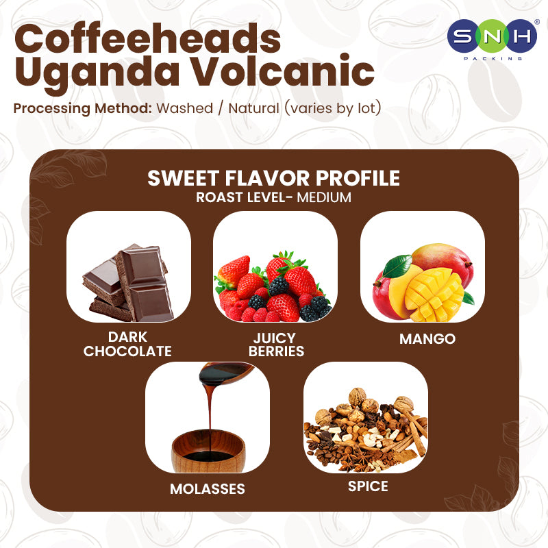 Discover the deep and powerful flavors of Uganda Volcanic coffee, grown in the fertile volcanic soils of East Africa’s highlands. These specialty-grade Arabica beans are cultivated at high altitudes, producing a bold and full-bodied cup with remarkable complexity. Expect rich notes of dark chocolate, molasses, red berries, and subtle spice, balanced with a smooth finish. Perfect for espresso, French press, and pour-over brewing, Uganda Volcanic delivers a strong yet refined flavor profile that appeals to roasters, cafes, and true coffee enthusiasts