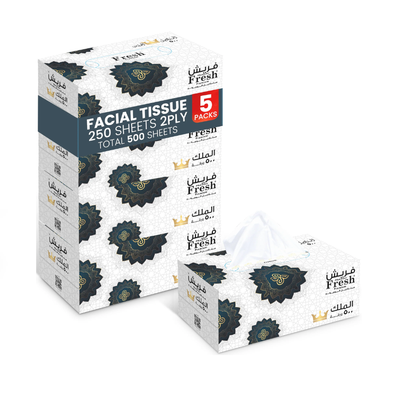 مناديل الوجه فريش 500 منديل مكون من طبقتين هو الحل الأمثل لاحتياجاتك من النظافة والراحة. صُممت هذه المناديل بمواد عالية الجودة، وتوفر لمسة لطيفة مع توفير قوة ومتانة استثنائيتين. مع إمداد وفير من 500 منديل لكل عبوة، تضمن لك مناديل الوجه فريش الاستعداد دائمًا لأي موقف، سواء في المنزل أو في المكتب أو أثناء التنقل. يعزز تركيبها المكون من طبقتين من الامتصاص والموثوقية، مما يجعلها مناسبة لمجموعة متنوعة من الاستخدامات.