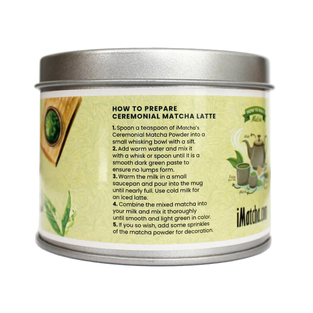 iMatcha Ceremonial Grade Matcha Powder AAA. Sourced from the finest shade-grown tea leaves, this premium 40g tin delivers vibrant green color, rich umami flavor, and a smooth finish. Ideal for traditional tea ceremonies or daily wellness rituals, iMatcha is stone-ground to preserve nutrients and antioxidants