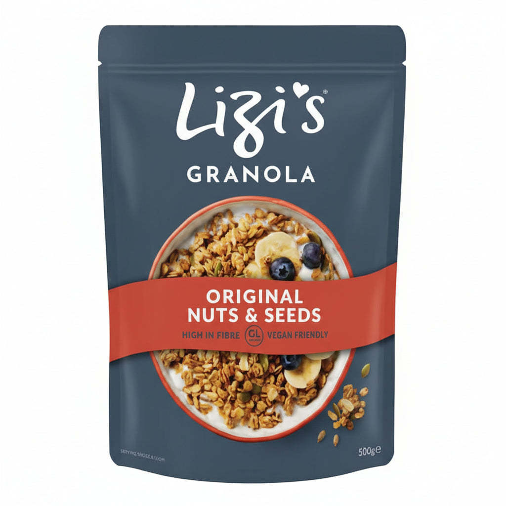 Start your day with the nourishing crunch of Lizis Granola Original Whole Grain Cereal. Packed in a 500g resealable pouch, this wholesome blend is made with toasted oats, nuts, and seeds—carefully crafted to deliver sustained energy and balanced nutrition. With no artificial additives or refined sugars, its high in fiber and slow-releasing carbohydrates, making it ideal for a healthy breakfast or mid-day snack. Enjoy it with milk, yogurt, or straight from the pack. Suitable for vegetarians and made with 100% natural ingredients.