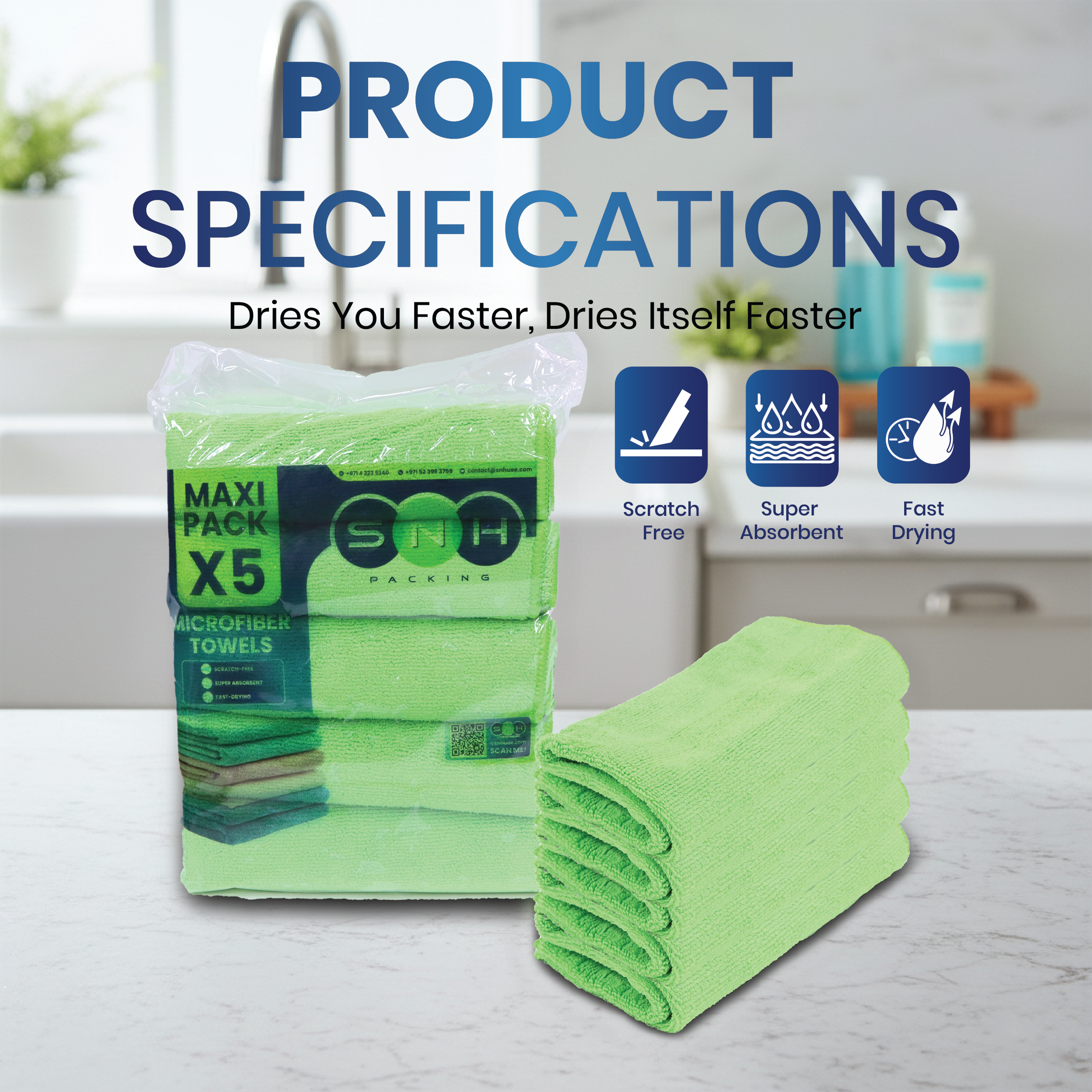 Achieve a spotless shine with SNH Microfiber Cleaning Cloth Packs, designed for versatile cleaning across all surfaces. Each 40x40cm cloth is made from premium microfiber fabric, ensuring maximum absorbency, lint-free performance, and a streak-free finish. Available in Blue, Red, Pink, Grey, Green, and Mix Color packs, these reusable cloths are ideal for cleaning glass, furniture, vehicles, kitchens, and offices. Durable, quick-drying, and soft on all surfaces, they deliver professional-grade results without scratching or leaving residue.