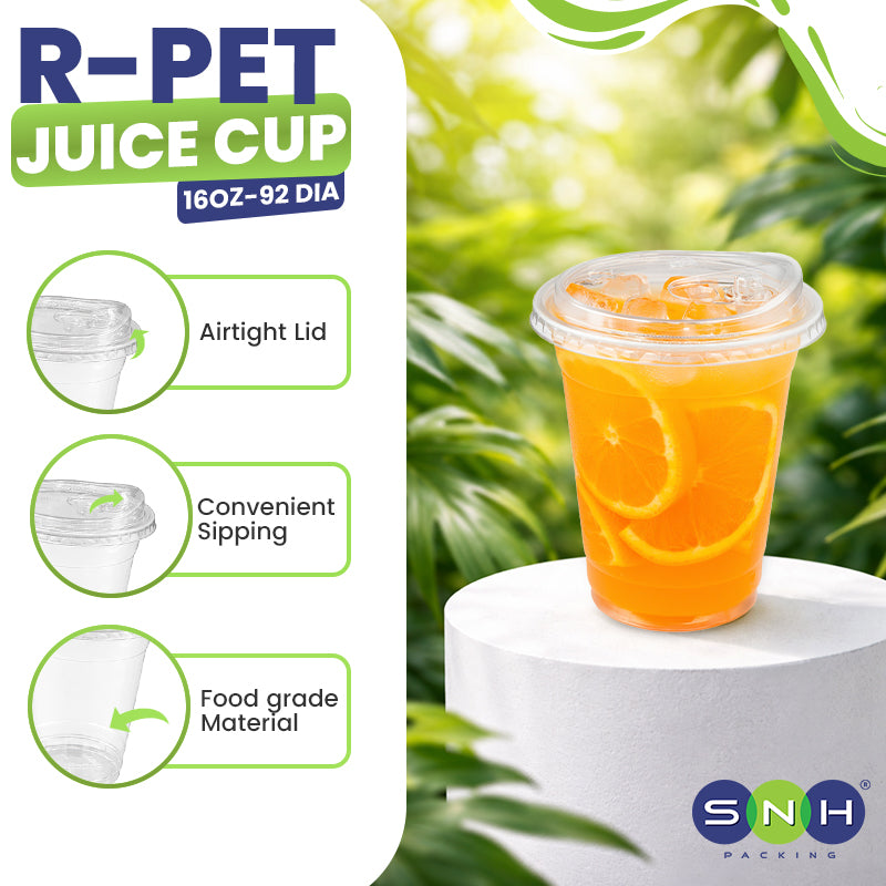 Our PET Juice Cup 92mm is a high-quality disposable cold drink cup designed for serving juices, smoothies, iced coffee, soft drinks, and other chilled beverages. Made from premium food-grade PET plastic, these cups are crystal clear, durable, and perfect for professional beverage presentation.