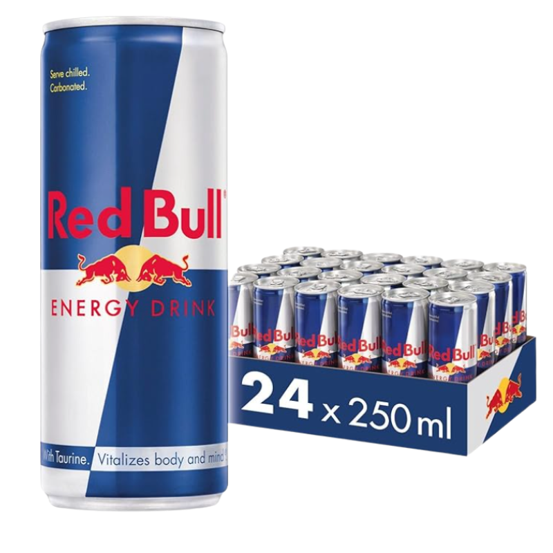 Stay energized and focused with the world’s most iconic energy drink – Red Bull 250ml, now in a convenient 24-pack. Whether you're powering through a long day, preparing for a workout, or pulling an all-nighter, Red Bull delivers a perfect blend of caffeine, taurine, B-vitamins, and sugars to give you that signature boost. Served chilled, it's the go-to choice for athletes, students, professionals, and night owls alike.