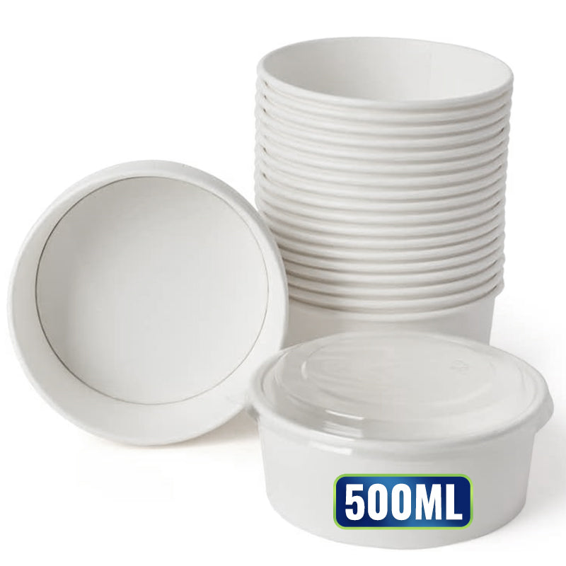 Keep food fresh and secure with the White Round Salad Bowl with PP Lid. Available in sizes 500ml, 750ml, 1000ml, and 1100ml, these bowls are perfect for serving salads, pasta, rice, and meal portions. Made from high-quality food-grade material with a tight-fitting PP lid, they ensure spill-proof storage and convenient takeaway packaging. Ideal for restaurants, cafes, catering services, and household use, these bowls combine durability with a clean and professional look.