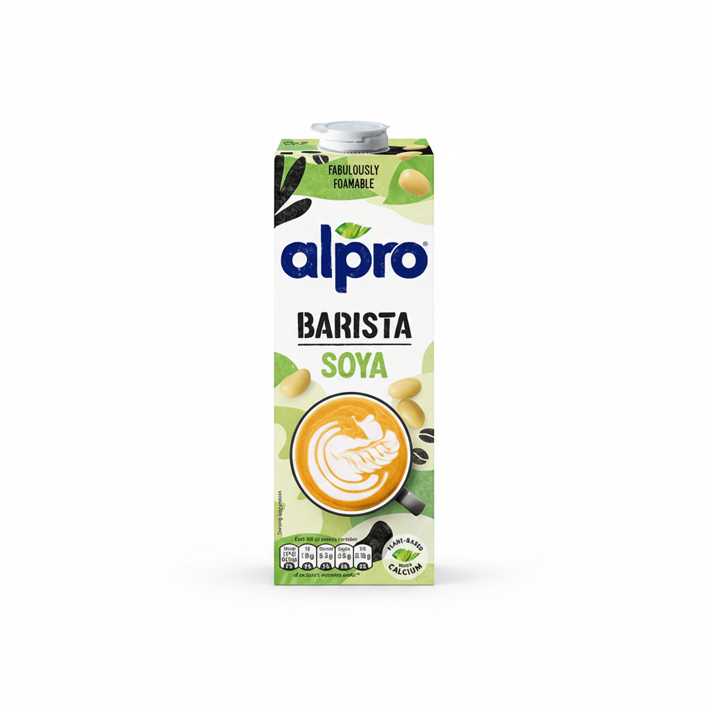 Alpro Soya Barista is a smooth, plant-based milk alternative crafted specifically for coffee. It delivers a neutral, balanced taste and foams to perfection, making it a favorite for lattes, cappuccinos, and flat whites. Whether you're a professional barista or a home coffee lover, this dairy-free option is ideal for daily use with no compromise on performance or flavor.