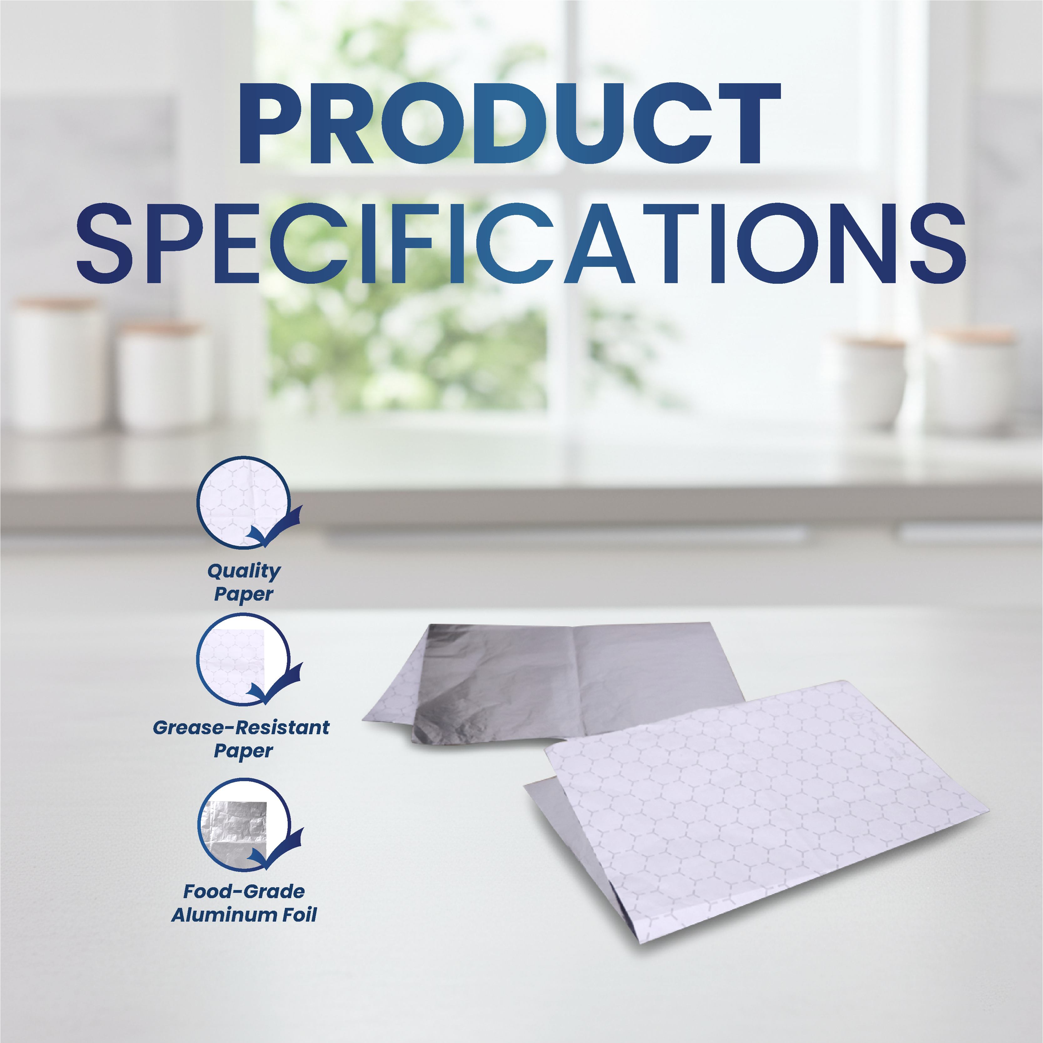 The Plain Aluminium Burger Foil Wrap 25x35 CM is ideal for wrapping burgers, sandwiches, and fast food items for takeaway or delivery. Made from high-quality aluminium, it ensures hygiene, heat retention, and durability. Perfect for restaurants, cafés, catering services, and commercial kitchens across the UAE, this wrap provides a convenient and professional solution for food packaging.