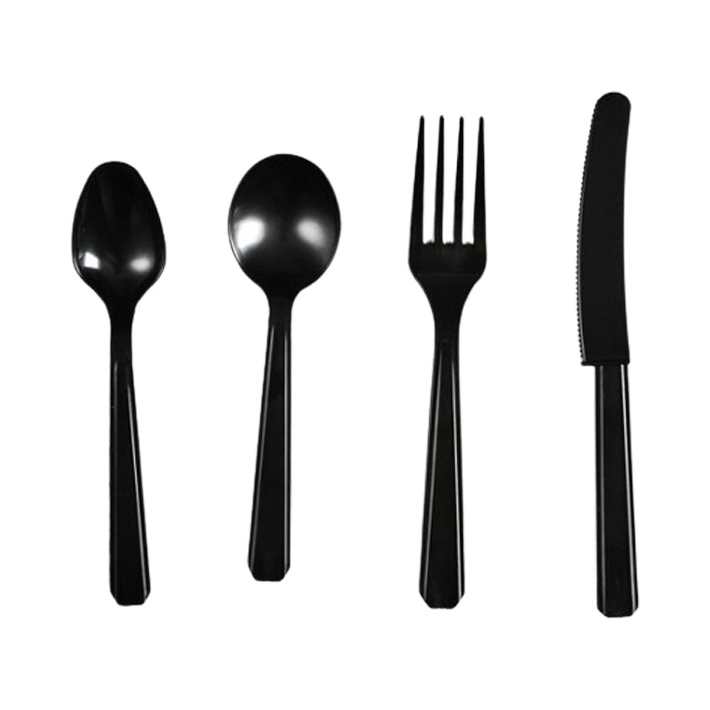 Black Plastic Cutlery Set, Serving a Fork, Spoon, and Knife alongside soups, chowders, ice cream, and other dishes is an environmentally friendly option. The compostable Cutlery is made of heat-resistant CPLA plastic that can withstand temperatures as high as 180F. They can be used with both hot and cold foods. Plastic spoons can be used indoors and outdoors for serving food. Parties, get-togethers, and feasts are perfect for using the use-and-throw Disposable Cutlery.