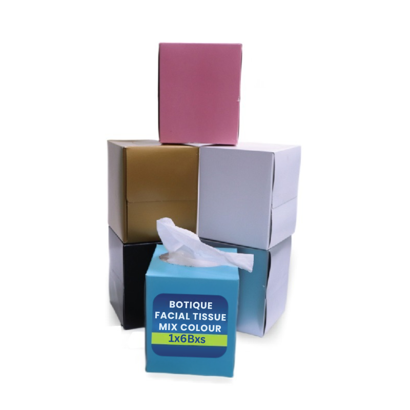 Experience premium comfort and elegance with Botique Facial Tissue Boxes, designed for softness, absorbency, and style. Each box contains high-quality 2-ply tissues made from virgin pulp, offering a gentle touch that’s perfect for everyday use at home, offices, cars, or restaurants. Available in multiple elegant colors — White, Black, Golden, Pink, and Mix, these tissue boxes blend perfectly with modern interiors while ensuring hygiene and freshness. Each pack includes 6 boxes, ideal for both personal and commercial use.