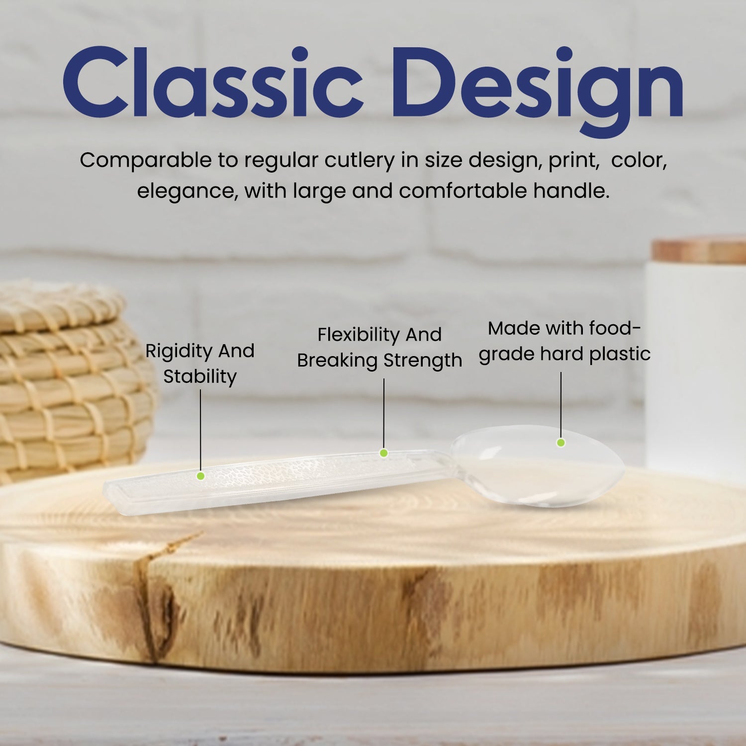 Heavy-Duty Plastic Spoons (Clear & Black)