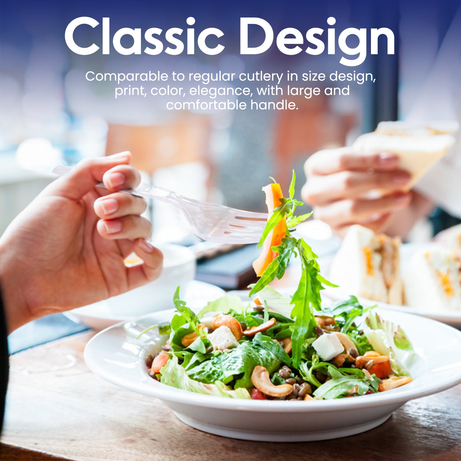 Plastic Fork Clear A clear plastic fork offers an eco-friendly solution for serving alongside salads, pastas, grilled meats, and more. Constructed from compostable CPLA plastic, these forks are heat-resistant, able to withstand temperatures as high as 180°F, making them suitable for both hot and cold dishes. Perfect for indoor and outdoor events alike, such as parties, picnics, and gatherings, these disposable forks provide a convenient option for single-use utensils.