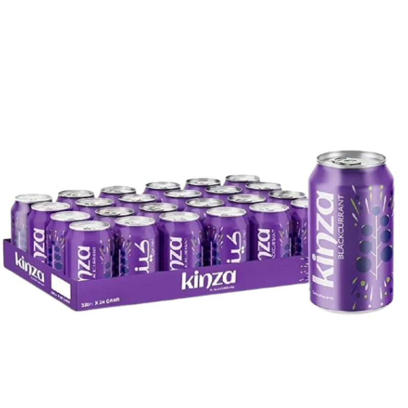 Kinza Blackcurrant Soft Drink Tin 300ml x 24 – Fruity Sparkling Beverage Pack