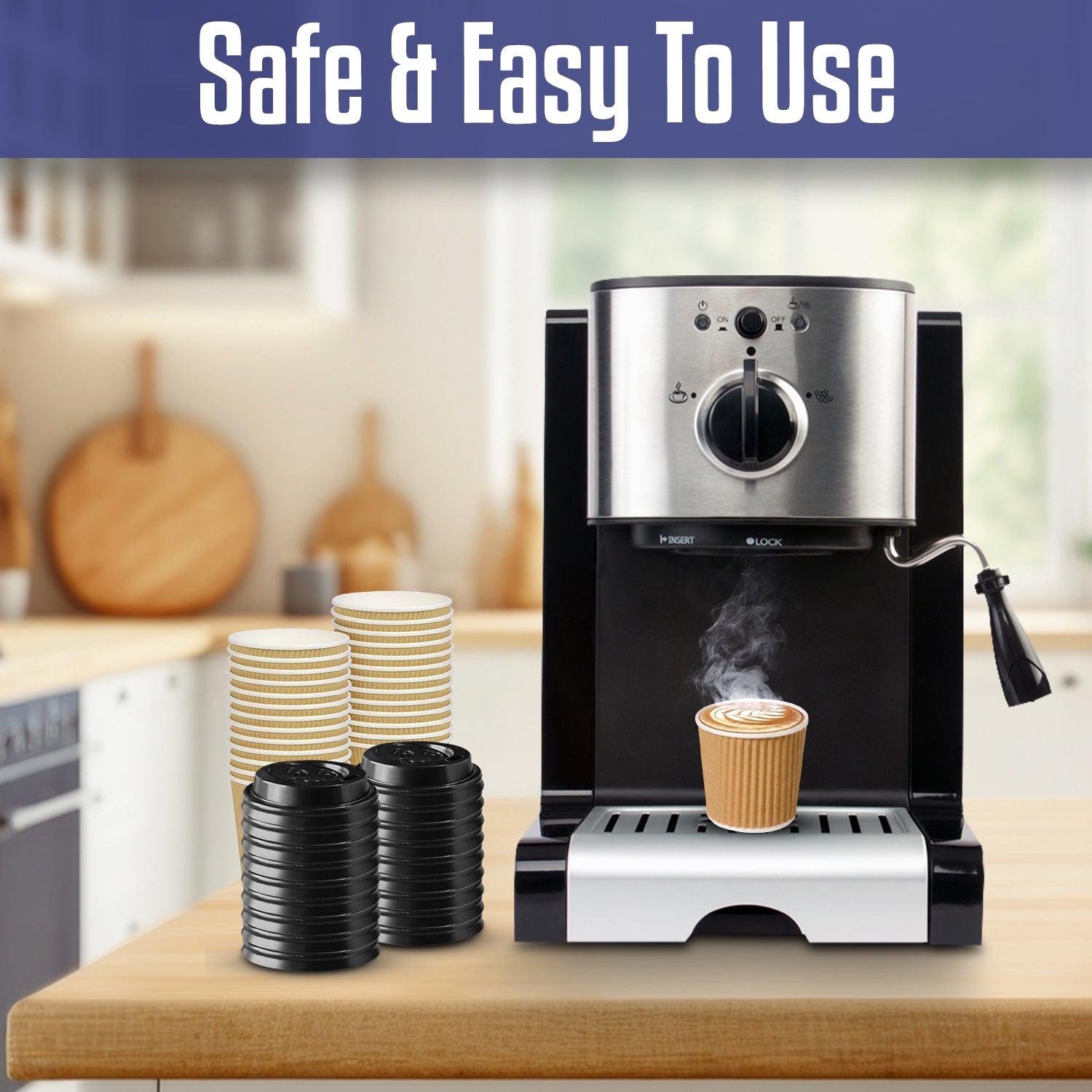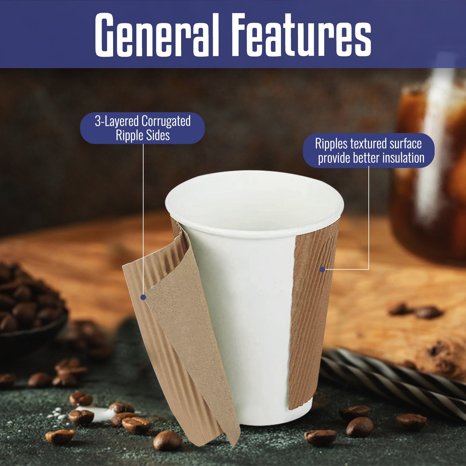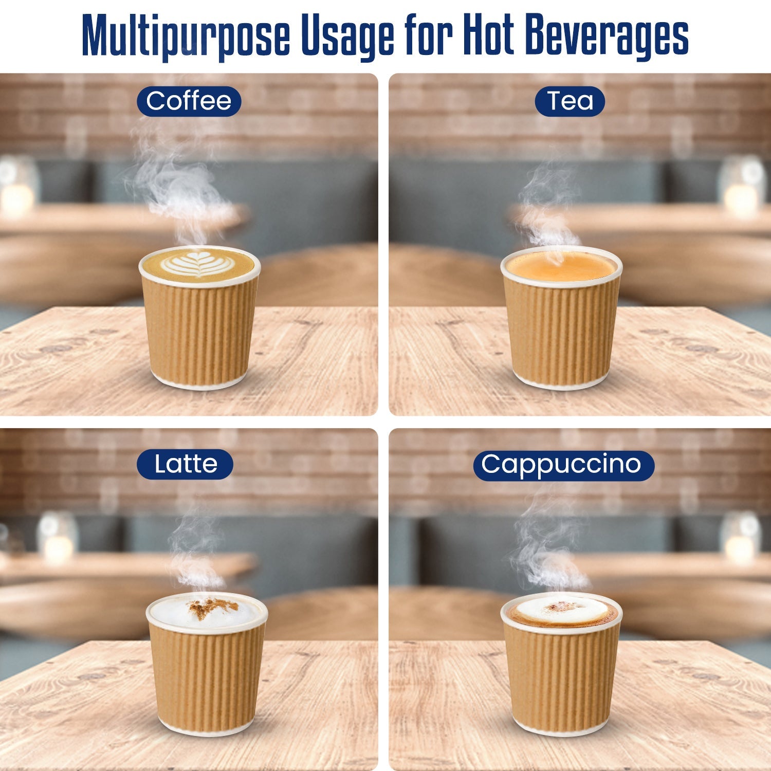 Serve hot beverages in style with our Kraft Ripple Coffee Cups with Lids, available in 4oz, 8oz, and 12oz sizes. These cups feature a triple-layer ripple wall for insulation, keeping drinks warm while ensuring hands stay cool—no sleeve required. Each cup includes a tight-fitting lid to prevent spills and make it ideal for takeaway service. Perfect for espresso, lattes, cappuccinos, and more, these eco-inspired kraft cups offer a professional, rustic look for coffee shops, offices, and events.