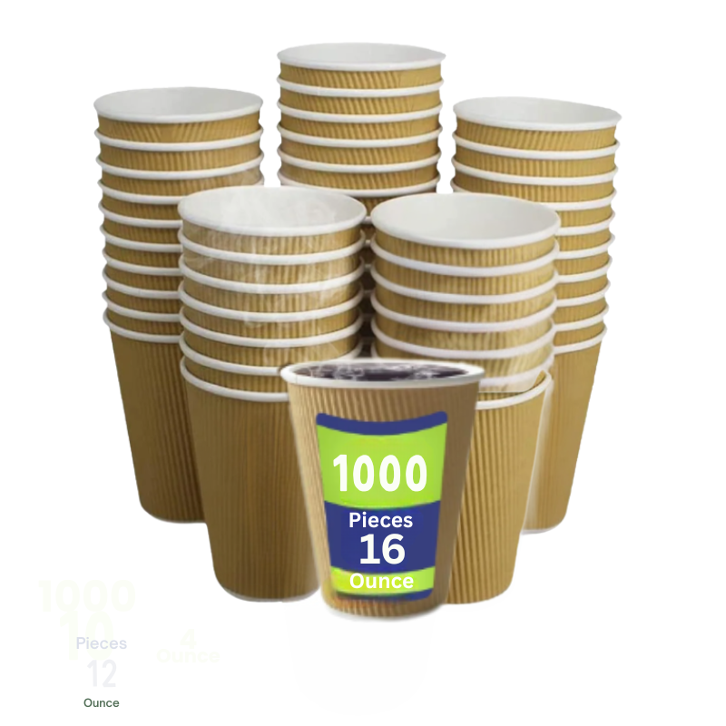 Our Ripple Wall Brown Paper Cups are perfect for serving hot drinks in style and comfort. Designed with triple-layer insulation, these disposable cups keep beverages hot while protecting hands from heat. Made from premium food-grade paper, they are eco-friendly, durable, and suitable for cafes, restaurants, offices, and takeaway services. Available in convenient bulk packs – 4oz (1000pcs), 8oz (500pcs), 12oz (500pcs), and 16oz (500pcs) – making them the ideal choice for high-demand use.