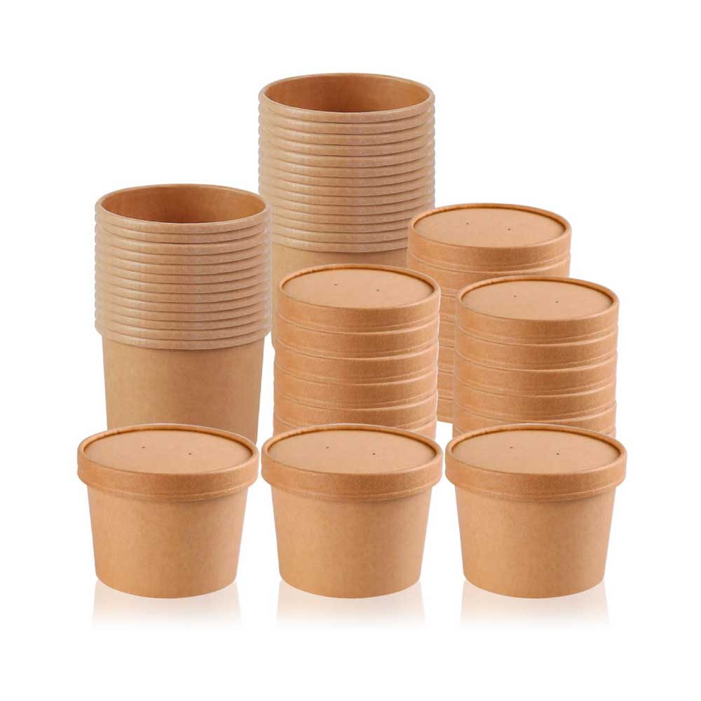 Eco-Friendly Kraft Soup Cups with Lids – Brown (Multiple Sizes, 500 PCS Pack)