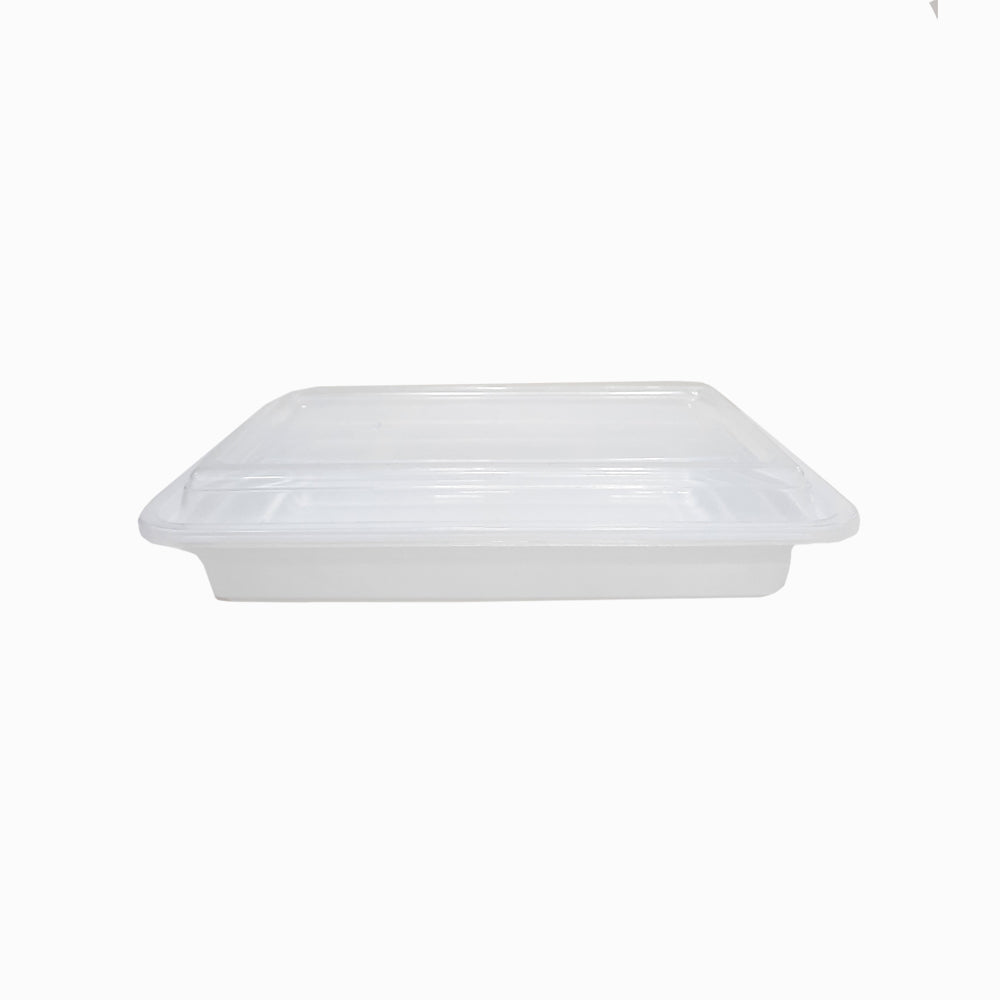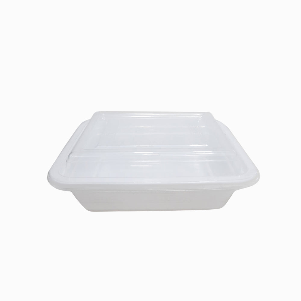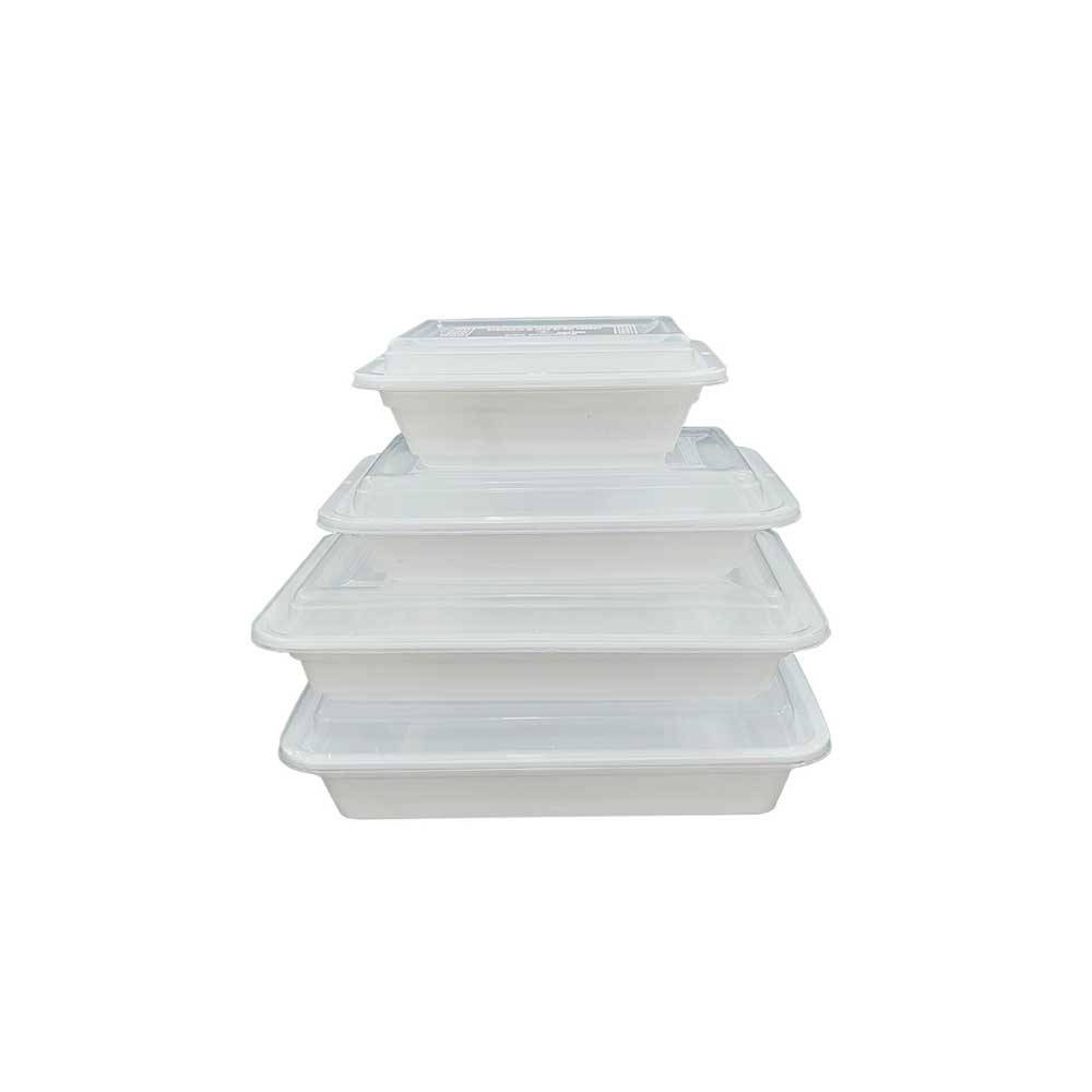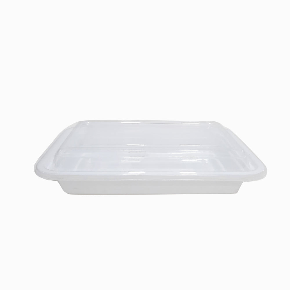Microwave Container White for optimal product visibility and spill protection, this white container comes with a clear, tight-fitting lid. Its ample capacity makes it ideal for storing salads, pasta, and entrees, and its flat top and bottom allow it to be easily stacked into to-go bags. You can use it for packaging food at your kiosk, food truck, convenience store, or restaurant.