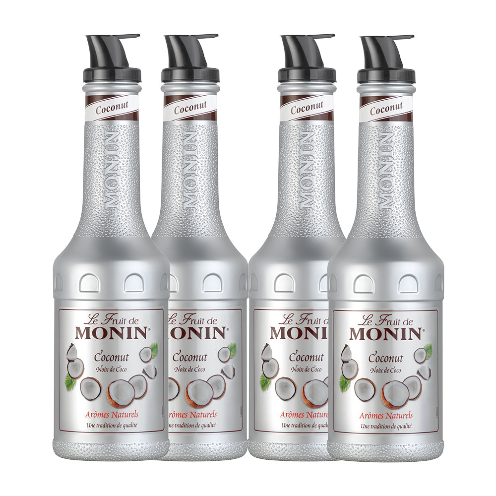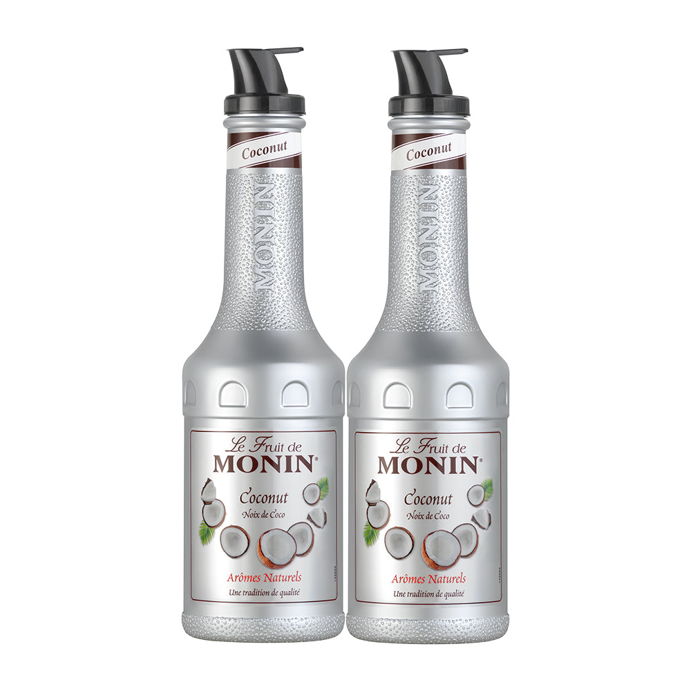 Monin Coconut Fruit Mix Puree. Made from premium coconuts, this versatile puree adds a smooth and authentic coconut flavor to cocktails, smoothies, desserts, and more. Perfect for professional bartenders and home mixologists, it blends effortlessly into beverages and recipes. Whether you're crafting a piña colada or enhancing a tropical dish, Monin's high-quality puree delivers consistent taste and texture. Enjoy the convenience of a ready-to-use coconut puree without the hassle of cracking coconuts!