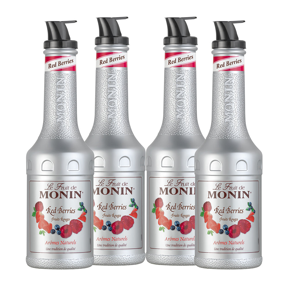 Monin Red Berries Fruit Mix Puree offers a vibrant, tangy blend of strawberries, raspberries, and blackberries in a convenient 1-liter bottle. Ideal for creating delicious smoothies, cocktails, or desserts, this puree adds a burst of fresh, natural berry flavor to your recipes. Made with high-quality ingredients, it ensures a consistent taste every time. Elevate your drinks and culinary creations with Monin's premium berry mix.