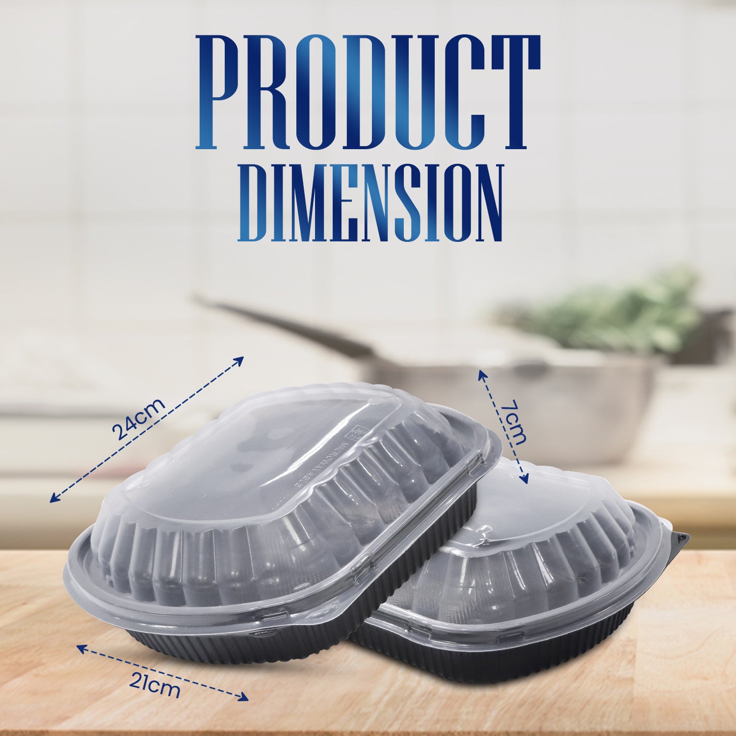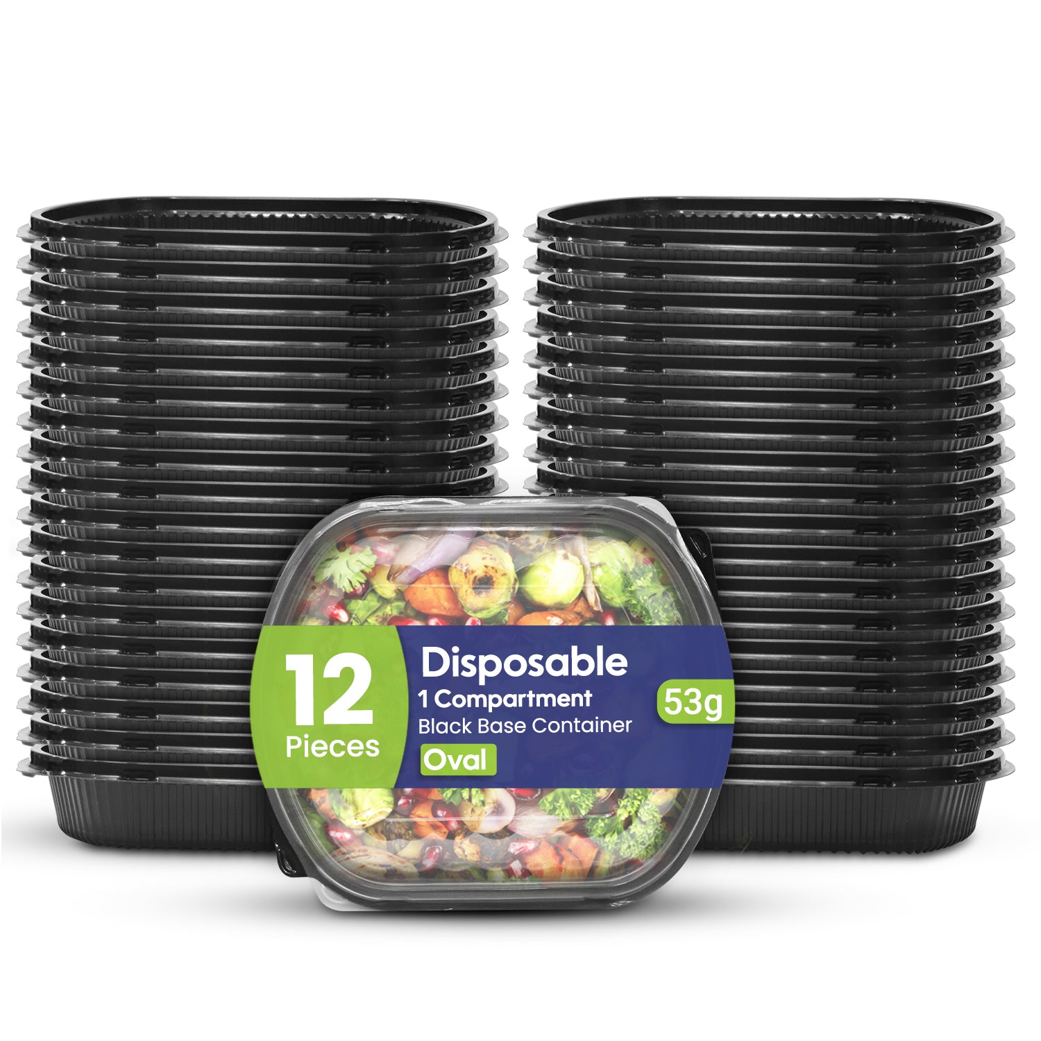 Oval Black Microwave Meal Prep Containers 1 Compartment With Lid