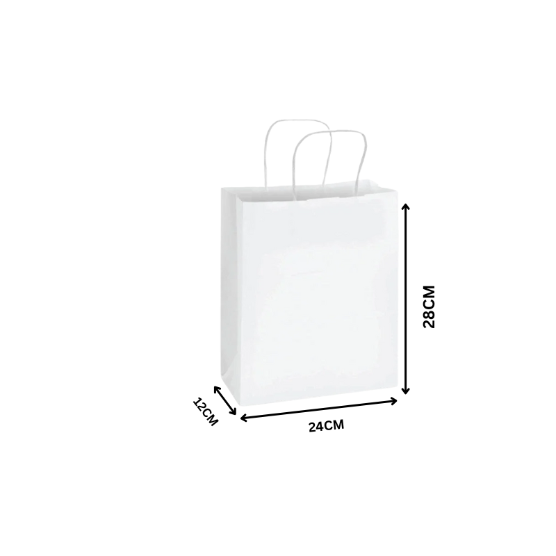Durable White Paper Bags with Twisted Handle – Multiple Sizes