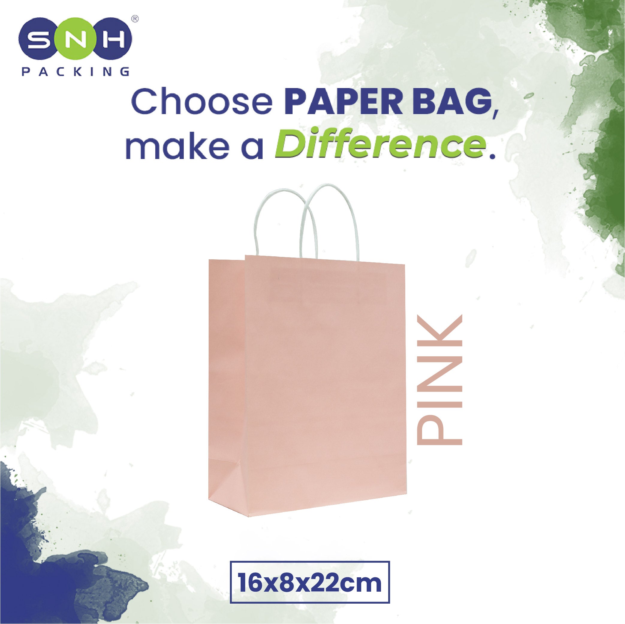 Make your packaging stand out with premium Pink Paper Bags featuring sturdy twisted handles. Crafted from durable kraft paper, these eco-friendly and reusable bags are ideal for boutiques, cafes, bakeries, gift shops, and special events. Available in three practical sizes (16x8x22 cm, 24x12x28 cm, and 26x12x33 cm), they combine strength, style, and functionality. Whether for retail use or personal gifting, these Pink paper bags provide a vibrant and sustainable packaging solution.