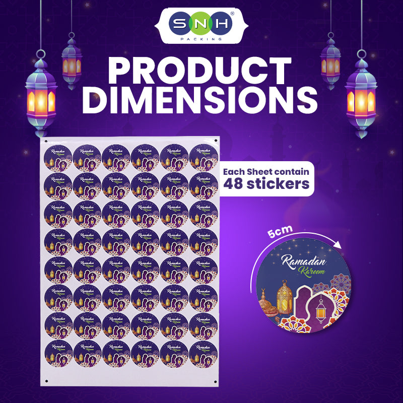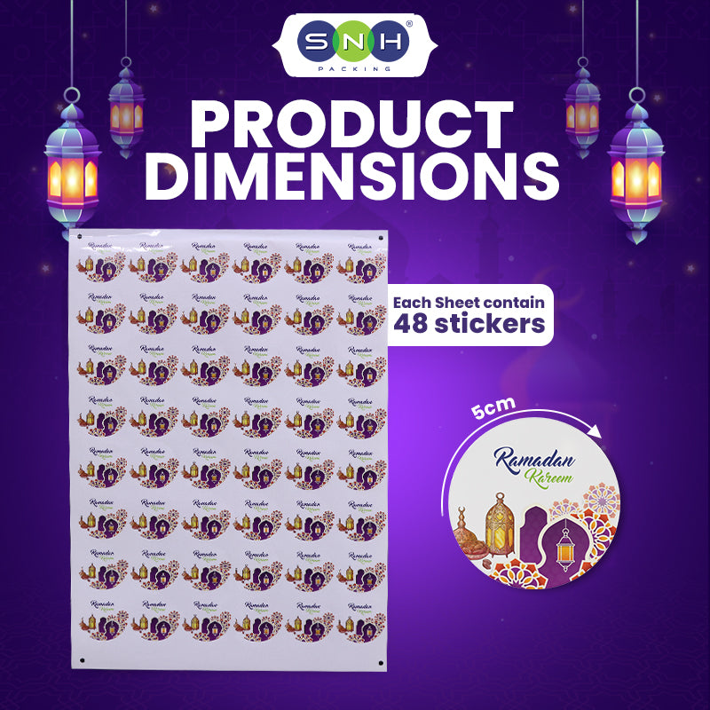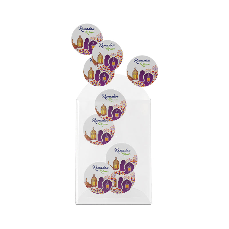Celebrate the spirit of Ramadan with these beautifully designed 5cm round paper stickers. Perfect for decorating gift boxes, envelopes, party favors, and Ramadan crafts, these stickers add a festive touch to any occasion. Made from high-quality paper, they are easy to peel and stick, making them ideal for personal or professional use. Bright, colorful, and thoughtfully crafted, these stickers are a charming way to share joy during the holy month.