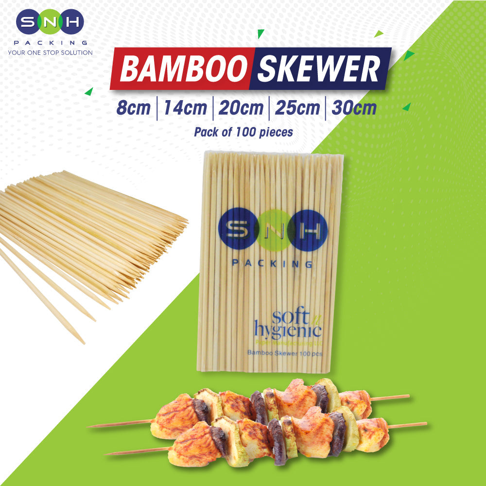 SNH Bamboo Skewers is a versatile and eco-friendly solution for grilling and food presentation. Made from sustainable bamboo, It provides a sturdy option for skewering meats, vegetables, and appetizers. With a smooth finish and sharp point, these skewers are ideal for BBQs, parties, and culinary creations, combining functionality with sustainability.