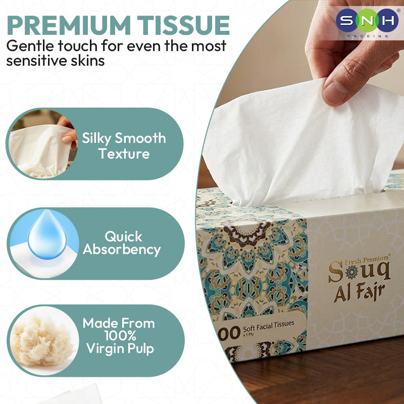 SOUQ AL FAJR Facial Tissue – 200 Sheets | Multiple Pack Options