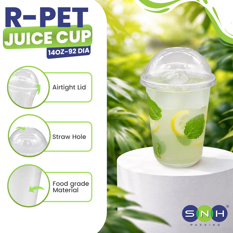 Our RPET Juice Cup & Lid (92mm) is an eco-friendly disposable cup made from recycled PET (RPET) plastic, designed for serving cold beverages like juices, smoothies, iced tea, and soft drinks. These cups are clear, durable, and provide a professional presentation while reducing environmental impact.